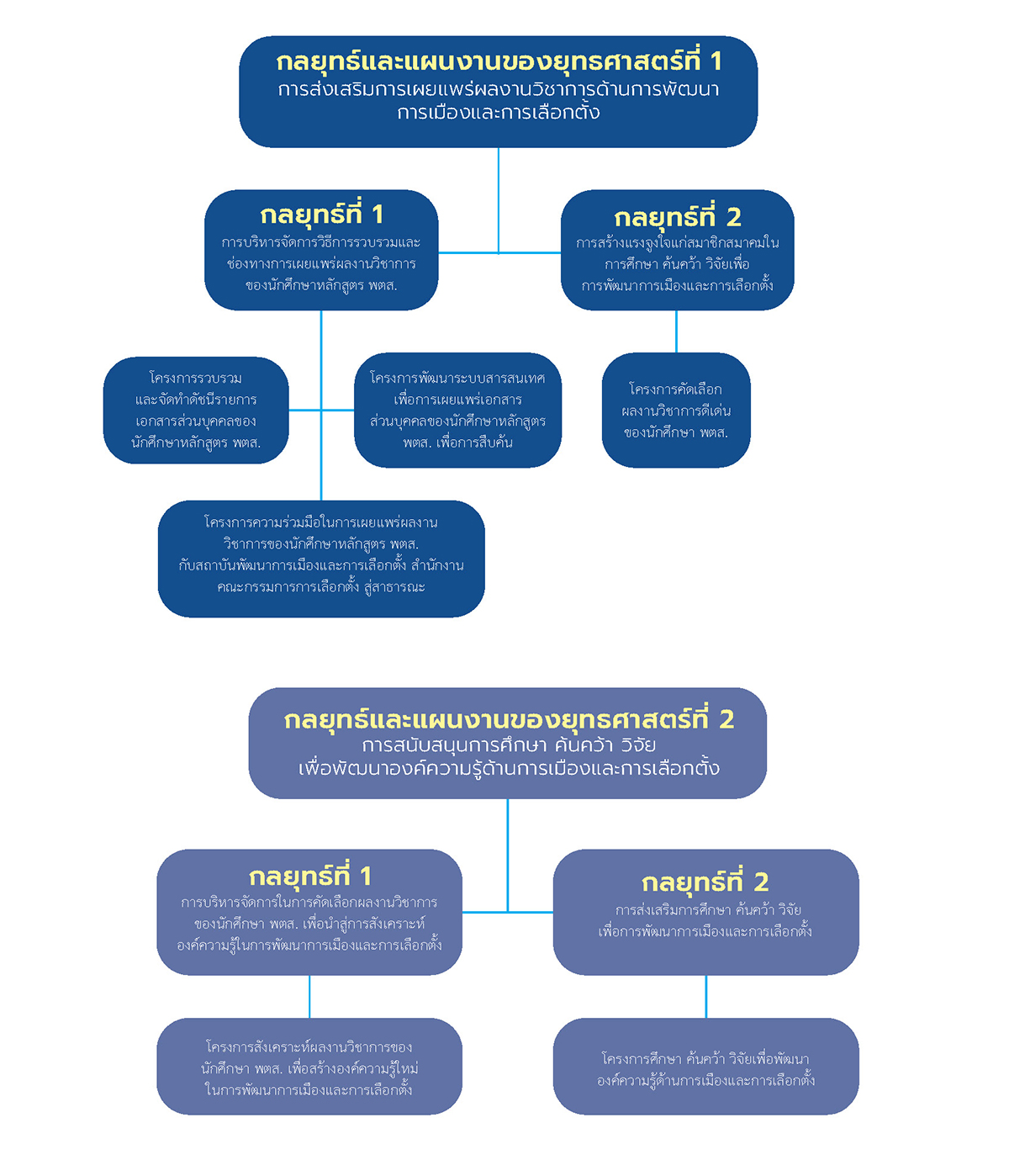 - โครงการศึกษา ค้นคว้า วิจัยเพื่อพัฒนาองค์ความรู้ด้านการเมืองและการเลือกตั้ง