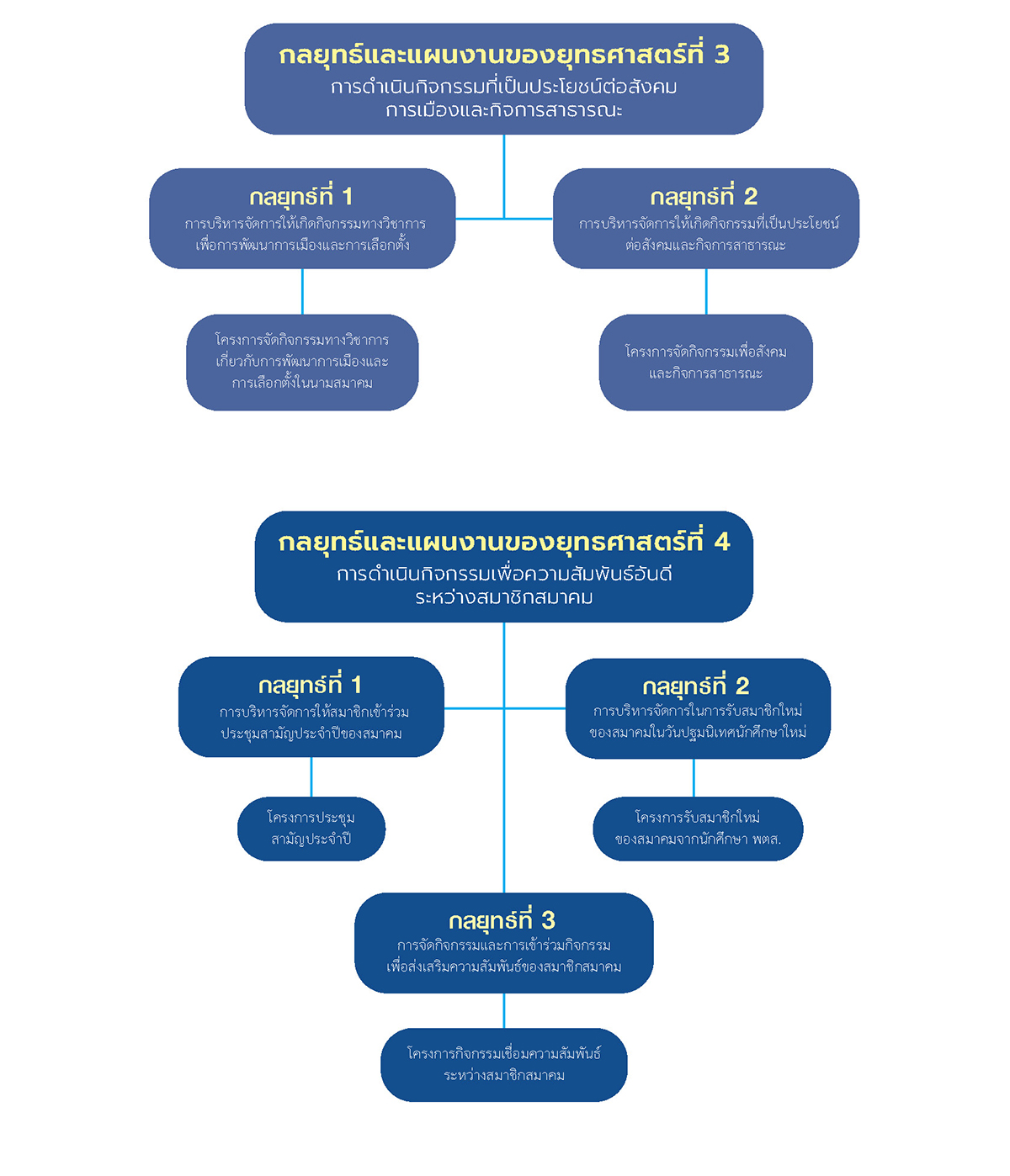 - จำนวนกิจกรรมที่ส่งเสริมความสัมพันธ์ระหว่างสมาชิกสมาคม อย่างน้อยปีละ 1 กิจกรรม
